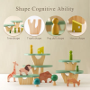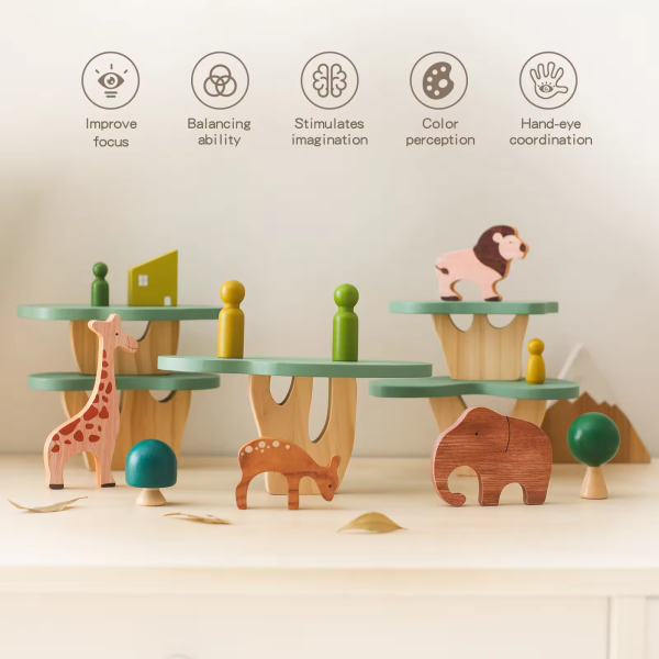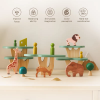 Juego que permitirá a los más peques de la casa crear sus propia selva. ¿Qué incluye este juego? Como se puede ver en la foto la caja incluye 5 troncos de diferentes tamaños, 5 copas de árboles de difernte dimensiones, 1 casita, 2 árboles (fijos no se pueden montar), 3 hombres de diferentes colores y tamaños, y por último, los protagonistas de la selva: 1 jirafa, 1 león, 1 elefante y una cabra.