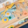 Banco de trabajo manual de madera para niños/as. Incluye alicates de madera, martillo, destornillador y muchos otros accesorios. Gracias a su gran bandeja de almacenamiento los más peques de la casa podrán disfrutar de espacio. A diferencia del banco de herramientas del que disponemos en colores pastel en este no se pueden guardar las herramientas de manera imantada en la parte interior frontal. En este banco de herramientas podrán almacenarlas en el cajón inferior o en las hendiduras que presentan en la parte superior para guardar el material.