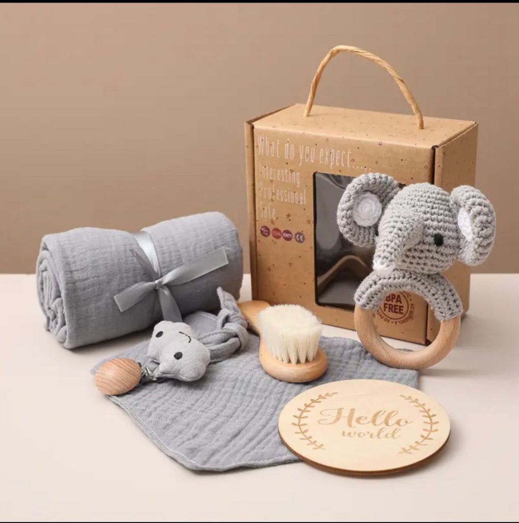 Juego de instrumentos musicales para niños. Incluye 5 piezas (1 sonajero, 1 sonajero de 3 anillos, 1 campana de jaula, 1 campana de mango y 1 trompeta).