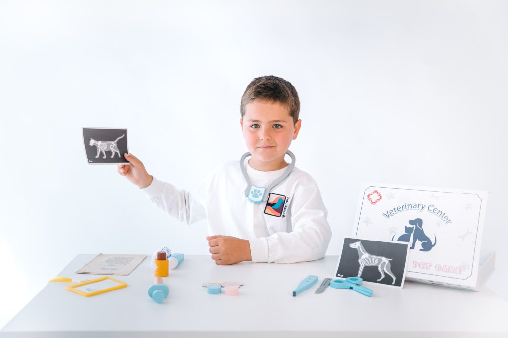 Bandeja de madera resistente en con 8 modelos de shushi, de los cuales 4 son imántados (los que presentan base blanca).
