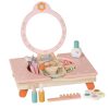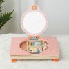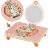 Tocador de sobremesa plegable que contiene: cuentas/bolas para crear collares y pulseras, 2 pintalabios, 3 ganchos del pelo, un peine, 1 perfume, pinceles para maquillarse y una paleta de sombras.