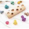 Tronco de árbol para que los más pequeS puedan plantar y recolectar sus propias setas. Cada seta es de un color y medida. ¿Qué trabajamos con él? la orientación espacial, la motricidad, el reconocimiento visual y la coordinación ojo-mano.